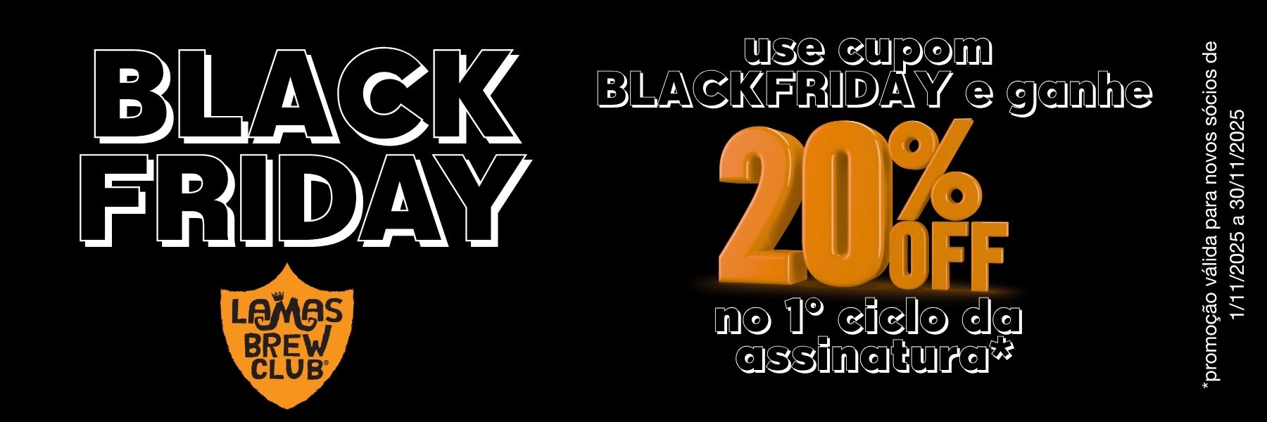Até 15% de desconto para usar em suas compras na Lamas Brew Shop (desconto não cumulativo com outras promoções e pagamento à vista)